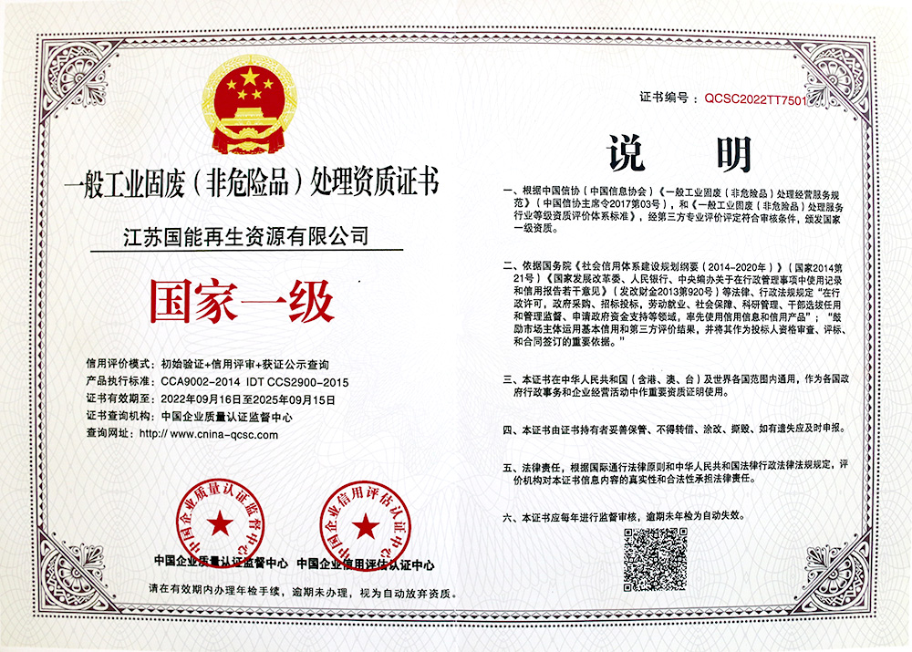 一般工业固废(非危险品)处理资质证书