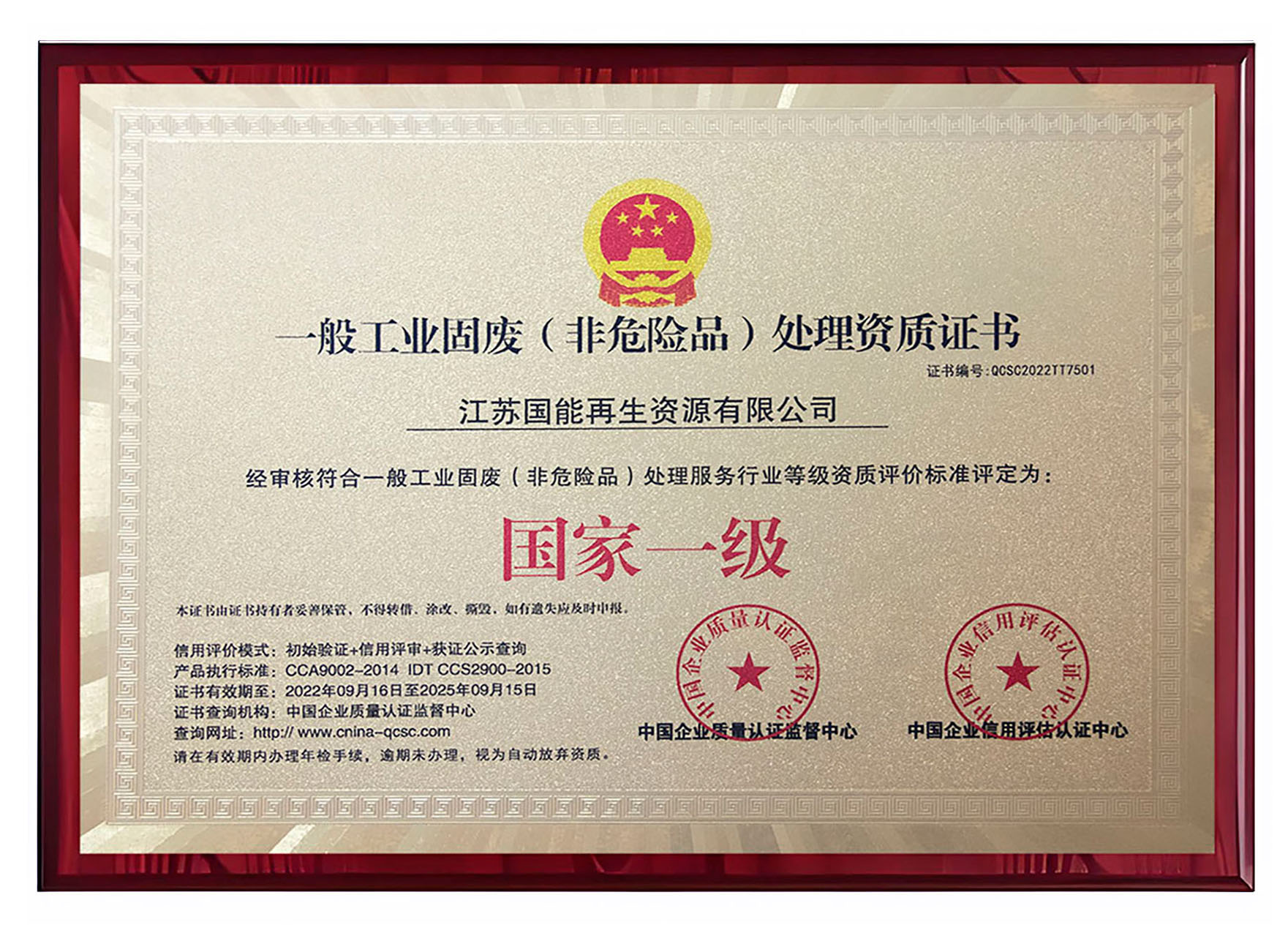 一般工业固废(非危险品)处理资质证书-铜牌