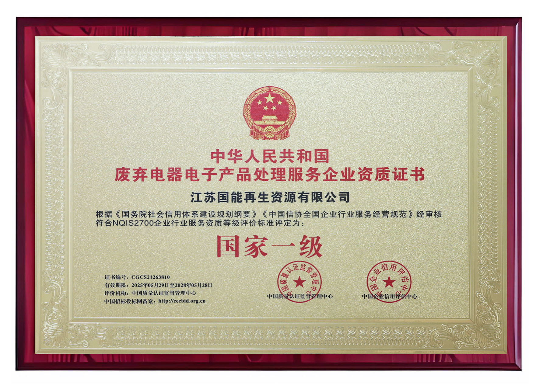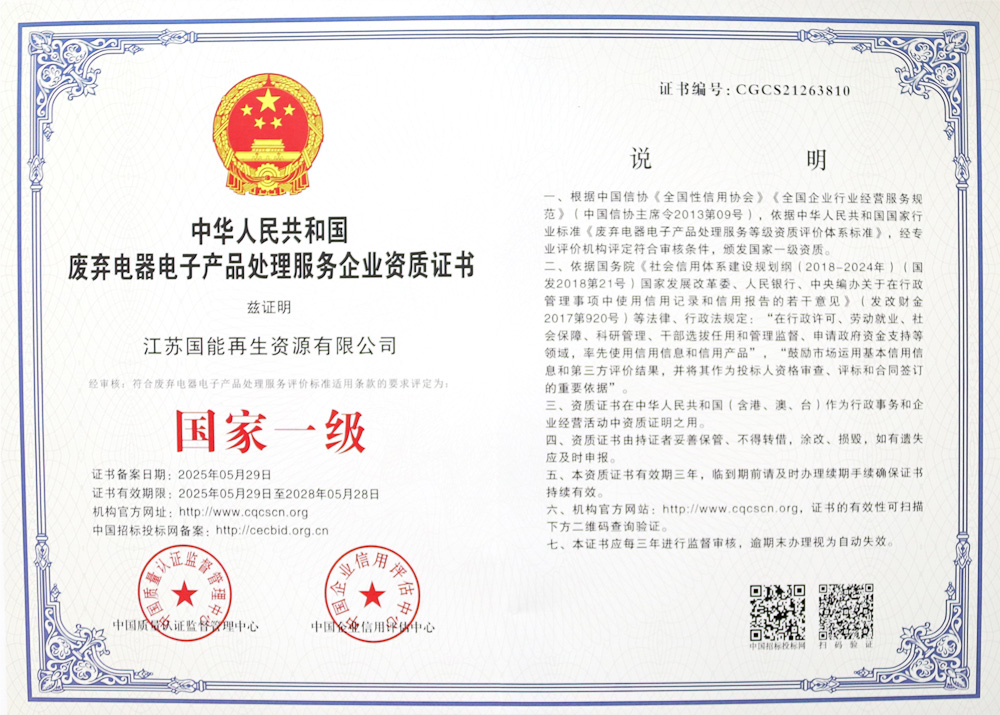 废弃电器电子产品处理服务企业资质证书