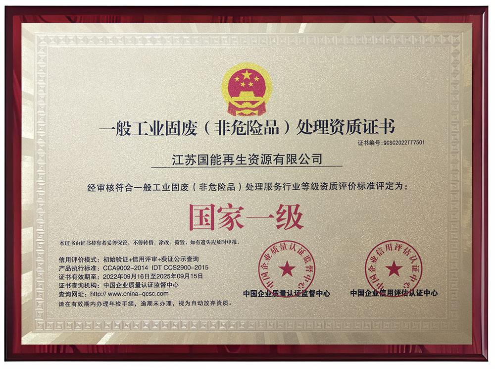 一般工业固废(非危险品)处理资质证书-铜牌